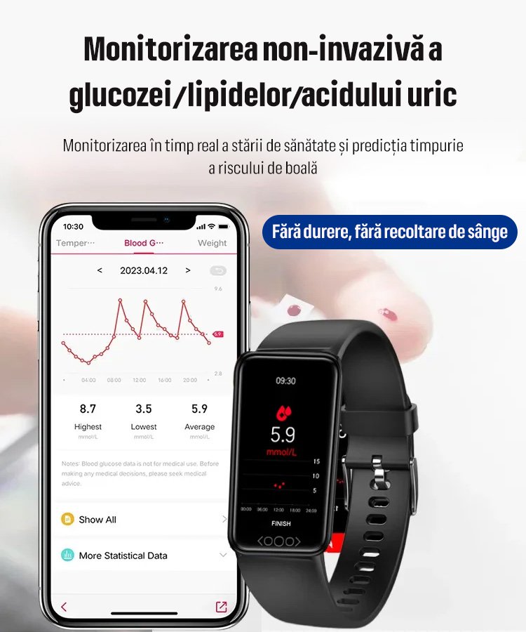 Brățară inteligentă pentru acid uric, lipide sanguine, glucoză, ritm cardiac